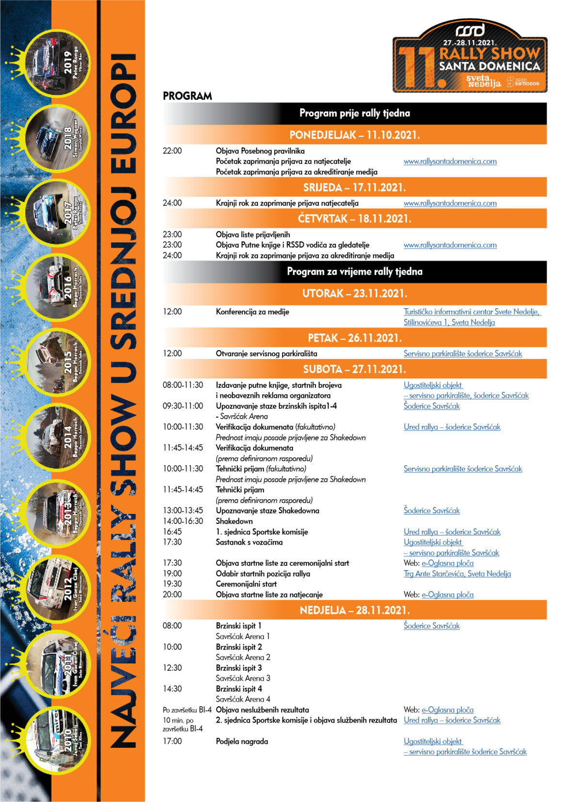 11. Rally Show Santa Domenica, 27.-28. studenoga 2021., Sveta Nedelja-Savršćak-Samobor RSSD 2021. OBJAVA ZA MEDIJE BR. 1 6. listopada 2021.