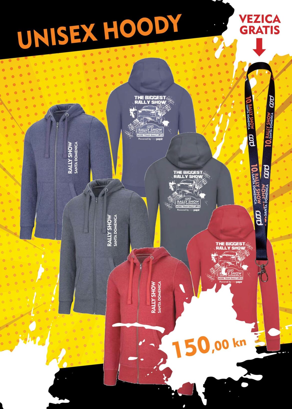 Poštovani obožavatelji Rally Showa Santa Domenica, ostalo nam je još nešto jubilarnih RSSD hoodica koje vam možemo ponuditi po promotivnoj cijeni 👌. Majice su unisex i modernog užeg kroja dostupne u velličinama S, M, L i XL. Iskoristite priliku❗️ ➡️ 150,00kn + trošak poštarine❗️ ⚠️Uz svaku majicu na poklon i jubilarna RSSD vezica⚠️ 👉 Za